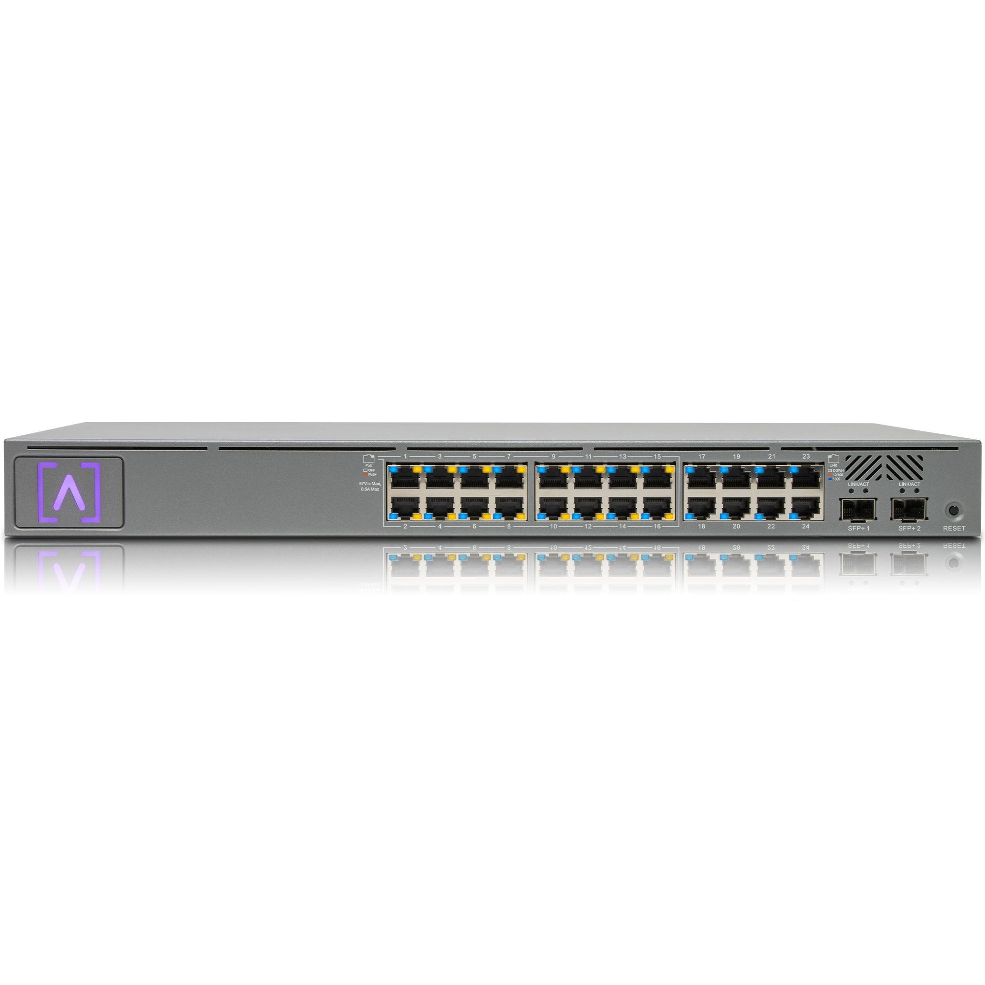 THE ALTA LABS S24-POE IS A RACKMOUNTABLE SWITCH WITH 24 GIGABIT PORTS, SIXTEEN OF WHICH SUPPORT POE+ AND INCLUDES 2 SFP+ PORTS