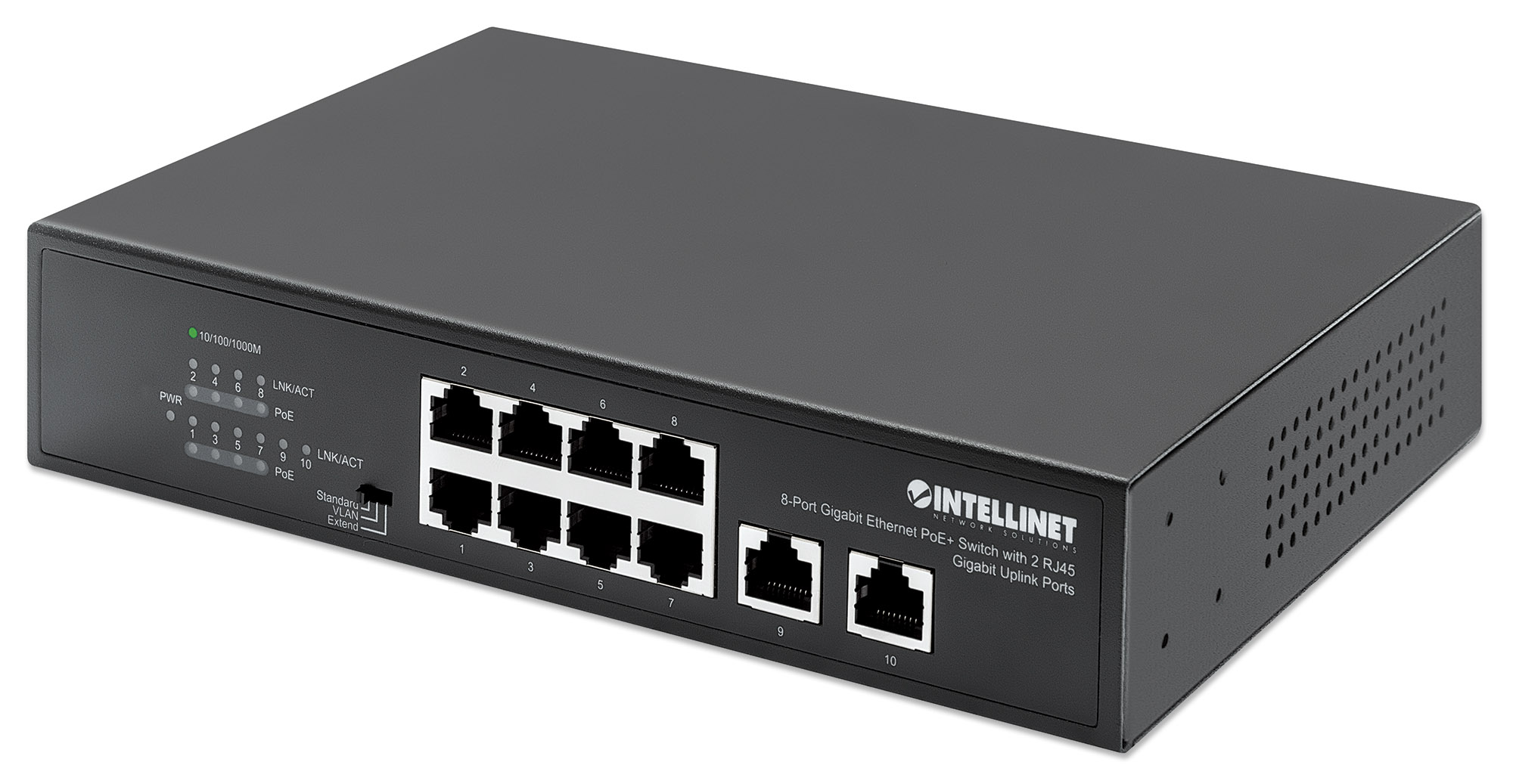 Intellinet 8 Port Gigabit Poe+ Swith With 2 Rj45 Gigabit Uplinks