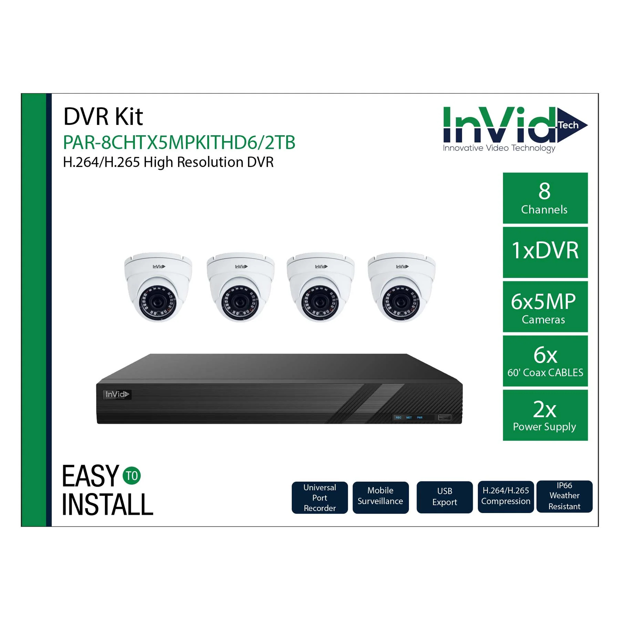 Invidtech 4 Channel 2tb Tvi/ahd/cvi/analog/ip W/4 Par-c5tir28 Turret 2.8mm Camera Kit | Closeout