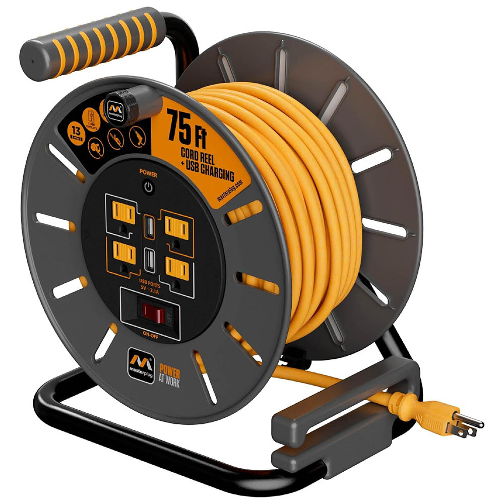 Masterplug Four Power Outlet Large Open Cord Reel With Usb Charging | 75ft