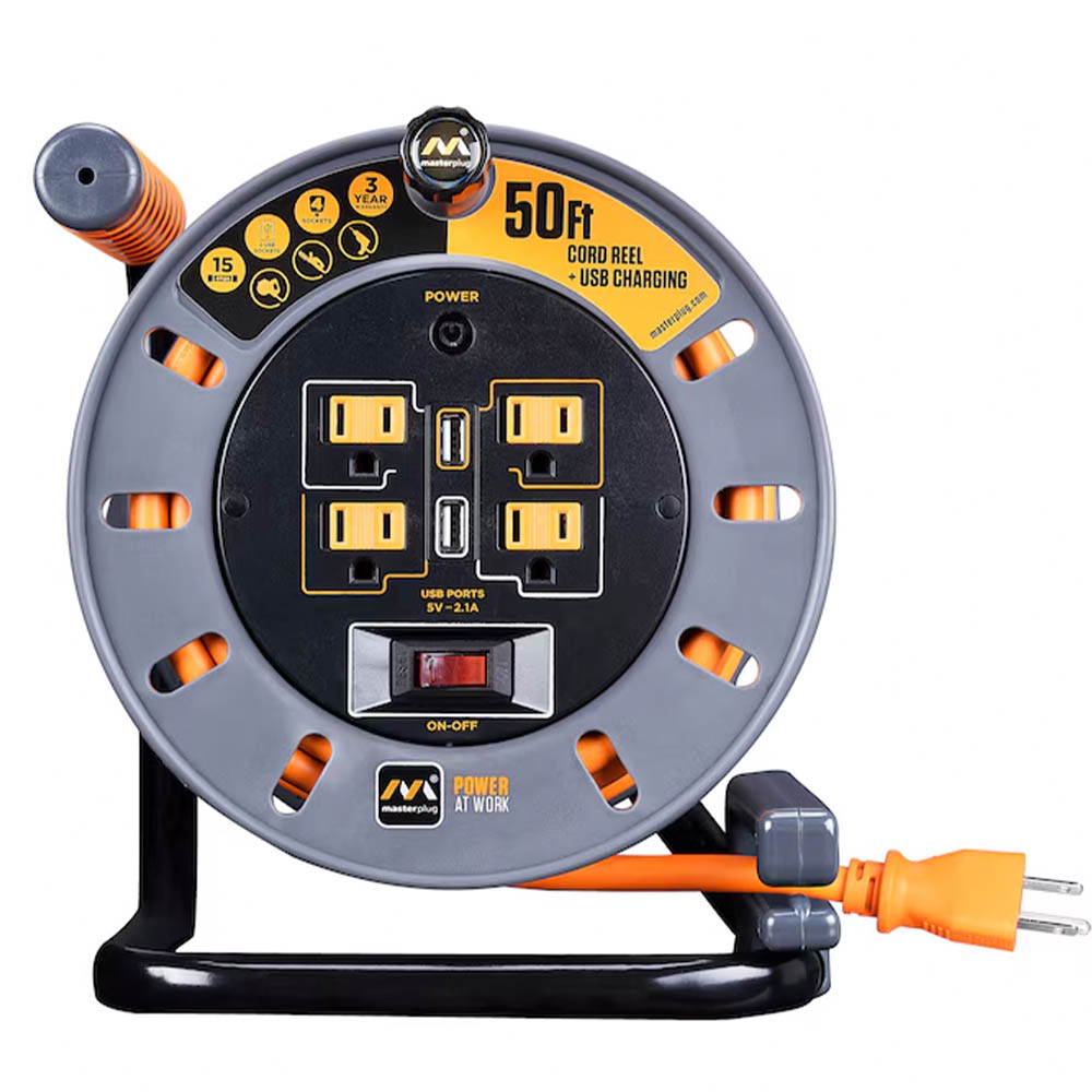 Masterplug Four Power Outlet Open Cord Reel With Usb Charging | 50ft